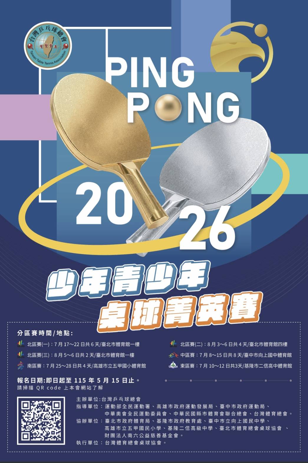 三、主辦單位:台灣乒乓球總會、台灣體育總會桌球協會。