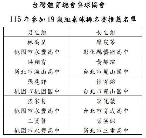 全國少年青少年桌球菁英賽