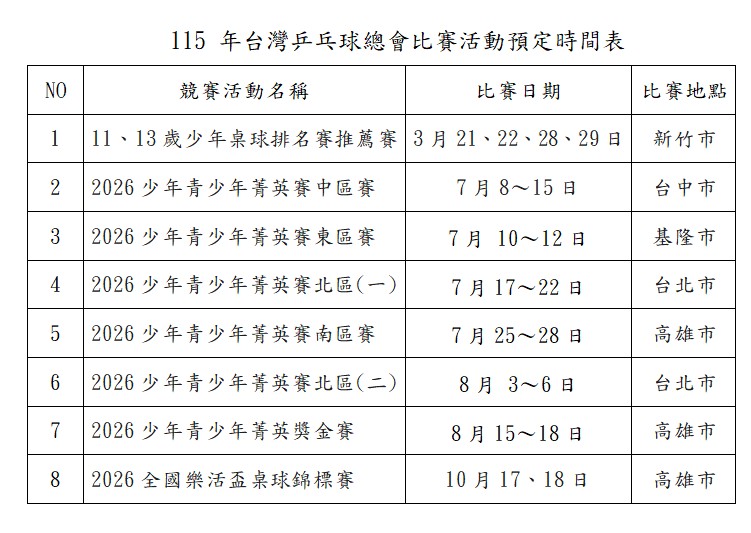 6、每次賽流程詳見賽程時間預定表。